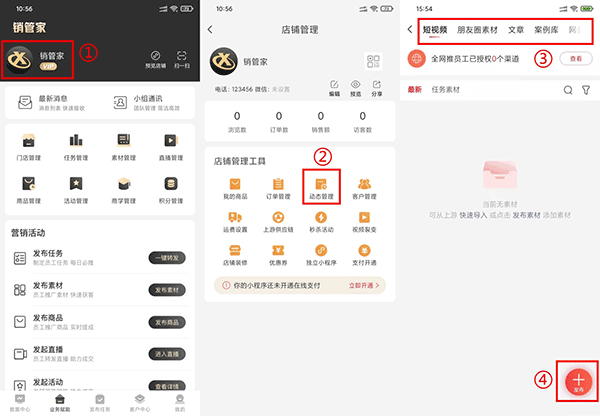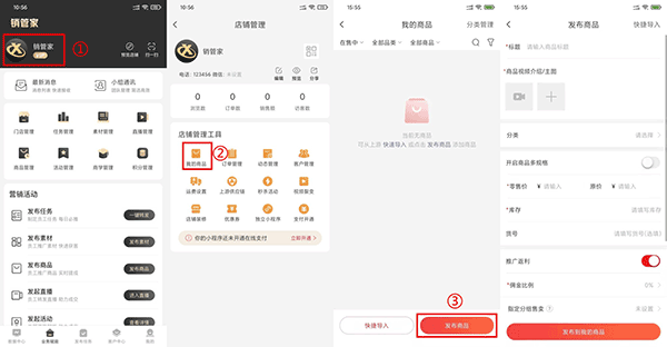 对于新手来说,用起来也很简单。首先得在APP里发布商品和动态,然后按照步骤完善内容并提交审核。发布商品的路径是【业务赋能】→点击头像→【我的商品】,发布动态则是【业务赋能】→点击头像→【动态管理】→右下角加号。最后别忘了在【我的】→【小程序管理】里提交微信审核。