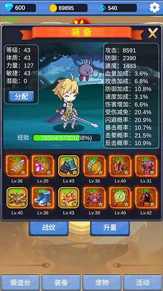 所以,升级加点推荐全部加力量,词条优先选择击晕和闪避,其次是暴击、反击、攻击和伤害,然后是伤害减免,其他词条的可以忽略价值。