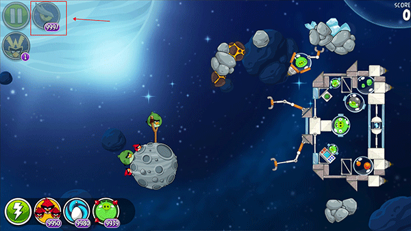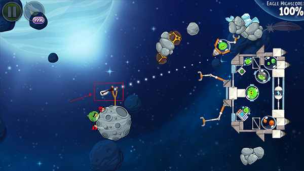 太空爆弹鸟(原黑色的炸弹鸟)是深藏不露的高手,可是一旦发威,就会一鸣惊人!知道这是什么意思了吧,是的,这种愤怒的小鸟可以爆炸!你只需要在恰当的时机轻触屏幕,小鸟就会像地雷一般爆炸!攻击范围和力度都是相当可怕的。所以你一定得在该爆炸的时候才能让它爆,稍不注意,可能就会错过最佳良机!这种愤怒的小鸟什么都能毁坏,所以好钢一定要用在刀刃上,最优先选择炸混凝土结构!