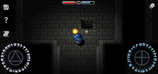 4、进入游戏之后,控制左下角的摇杆移动角色,右下角的摇杆可以控制火球发射的方向来打击敌人;