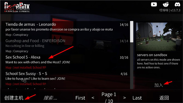1、打开G沙盒仇恨测试版,选择多人模式,并连接服务器;