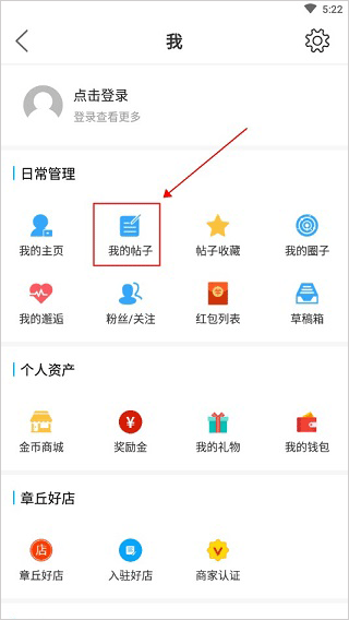 2、在个人中心页面中,找到【我的帖子】功能,进入该页面后即可管理删除自己的帖子了。