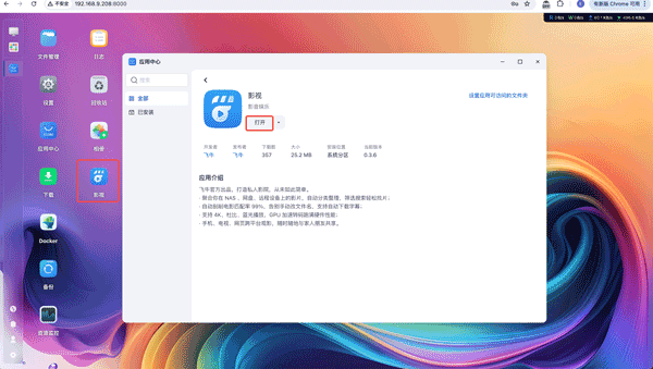 飞牛影视服务实时转码,支持流畅播放 4K、杜比、蓝光原盘。强大的播放器支持TV投屏、倍速播放、视频码率调整、音频调整、画面比例调整等功能。
