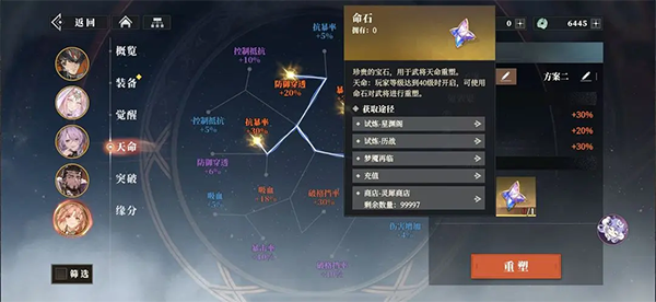 1、前期命石十分缺乏,建议不要过于追求完美属性,先把主要的队伍都激活天命;