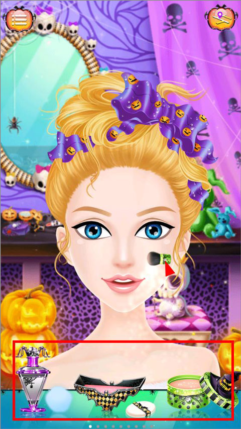 4、点击下方化妆品,画上万圣节妆容,夸张或者搞怪,惊悚还是可爱,由玩家说了算;