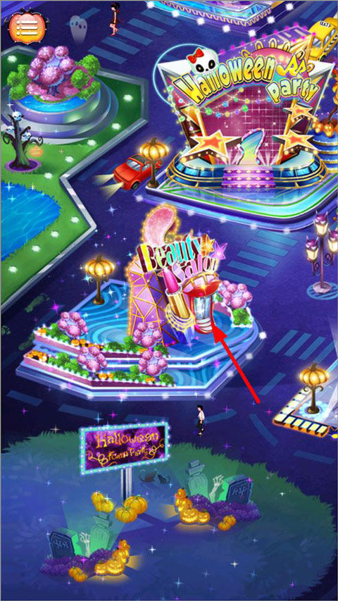 3、接下来回到地图页面,点击”Beauty Salon”给任务画上万圣节妆容;
