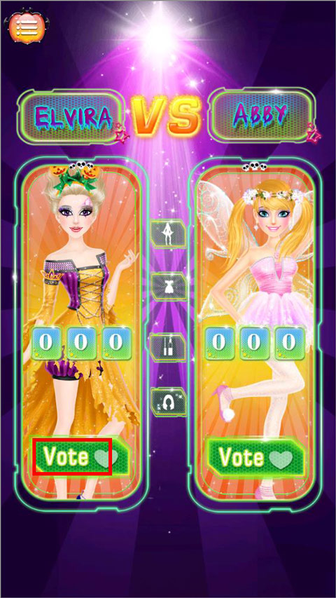 8、在疯狂万圣节派对游戏中玩家想和谁PK,点击她即可开始比赛,”Vote”按钮可以让你为喜爱的选手投票;