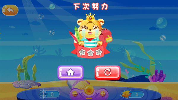 4、当左下角的渔网都用完了之后关卡也就结束了,当关卡满一颗星星就通关了。
