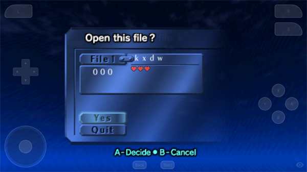 3、选择一个文档位置用来读取或是新建一个存档,需要注意的是屏幕右侧A是确认,B是返回。