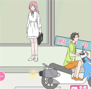 通关答案:点击第二张图获得小电驴,然后第三张图点击购物中心的牌子几次获得推进装备,回到图一给男主小电驴然后装上装备点击开始