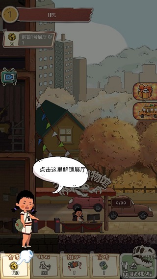 建设完成展厅后,点击“化石”,可以在恐龙化石里解锁不同种类的恐龙化石标本。