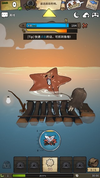 漂流少女生存记中文版是由韩国游戏团队Team Tapas打造的一款独立冒险生存类游戏,单从玩法上来看,这款游戏更像是一款放置类手游,简单的点击操作,便可享受漂流少女的海上冒险。相比其他同类作品,游戏风格的清爽性和治愈画风,让妹子看上去俏皮的多,茫茫海洋,无边无际,在此你需要帮助女孩通过钓鱼、拾取漂流瓶、探索岛屿等方式寻找适合的生存之道。除此之外,游戏中还有多样玩法,如探索、海上交易、击杀怪物等,丰富的玩法让你在体验过程中不再觉得单调,同时在主线任务的指导方面也不会让玩家觉得无方向可寻,如有兴趣的玩家,不妨下载尝试一番。