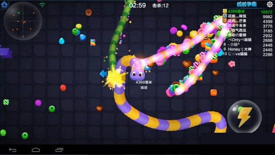 1、发育期:在游戏的前一分钟蛇蛇们都很短,击杀获得的分数很少而加速还要浪费分数,本身长度也不够无法对敌人形成有效的威胁。尝试击杀是可以的,但是更重要的是发育,吃闪亮的冰激淋块能让你迅速长大!