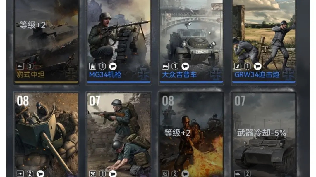 结:推荐封面上的卡组,我自己用起来感觉很舒服。卡组对卡牌要求不高,豹子可以换成四号,1级工兵和2级突击兵都可以改换先遣队和普通步兵来代替。