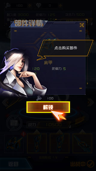 4、每个机甲战士都有不同的属性,选择本人钟意的战甲,便当你用心培育和改造;