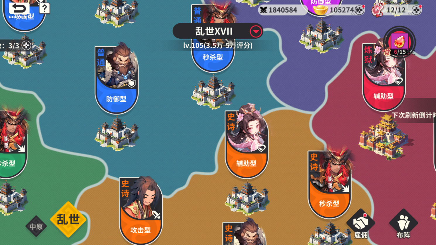 中原板块:中原将会根据主公等级提升中原等级,挑战通过中原关卡概率获得不同评分的战法。