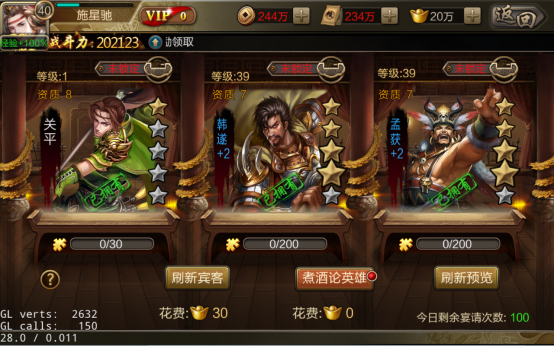 通过城池中的客栈按钮,可进入客栈。在客栈中可宴请指定3名武将,宴请武将后有一定几率获得大量将魂。