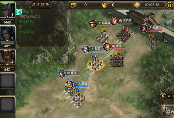 《攻城三国》专为新手玩家和懒人玩家开启了自动战斗通道。进入两军交阵的界面后,右下角会出现一个灰色的【自动】按钮。