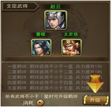 不断升级羁绊,可以获得更高的兵力提升,升级之前可要准备好铜钱哦~
