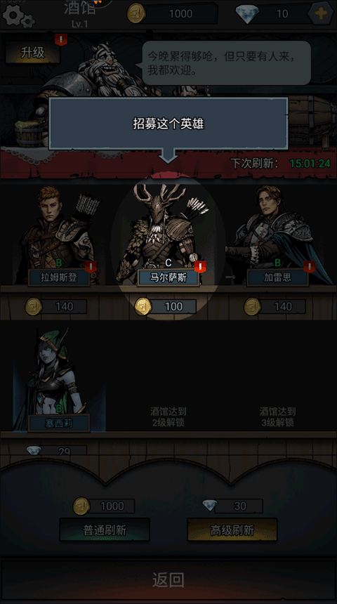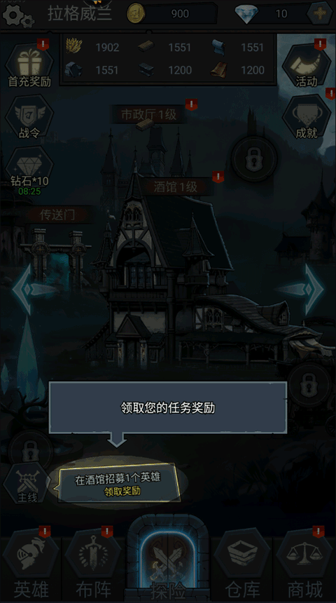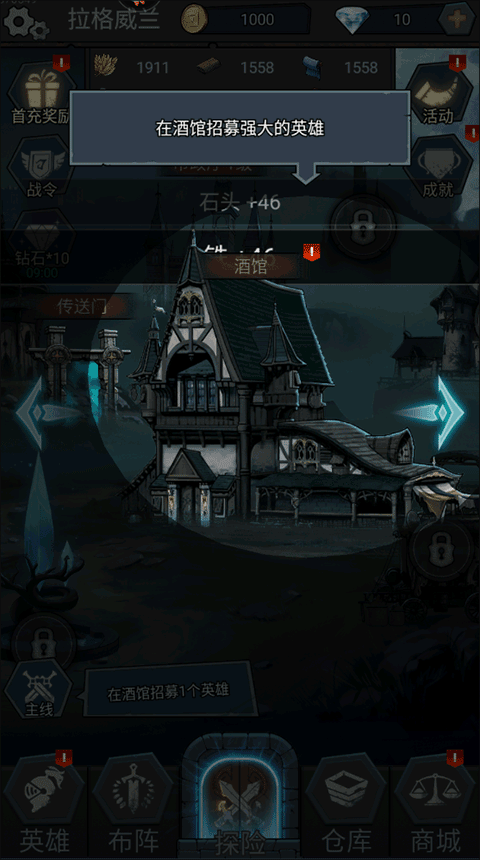 1、运行游戏后,在完成第一项任务后,玩家便可以开启酒馆招募了;