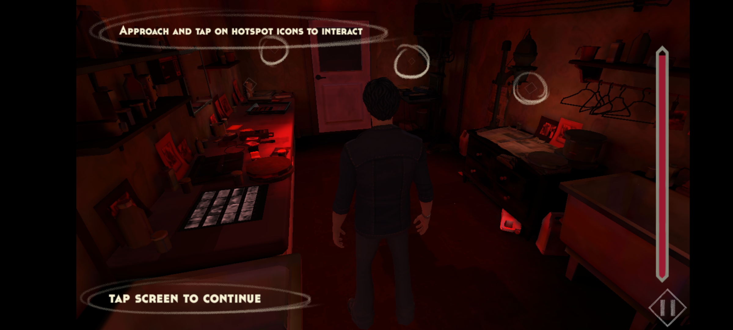8、接近并轻点热点图标以进行交互,点击屏幕继续