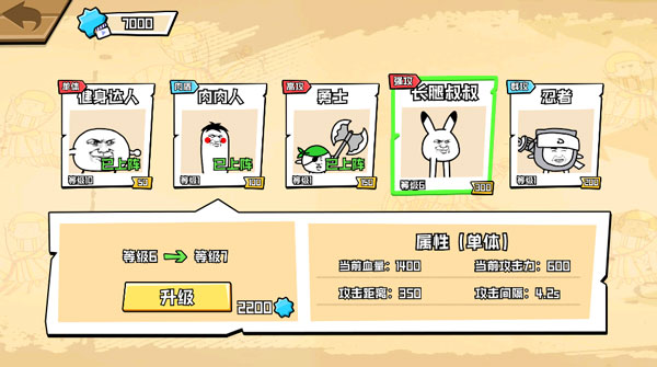 2、游戏中的表情悍将的移速各不一样,因为他们的属性区别了他们的战斗力和移速开始战斗吧;