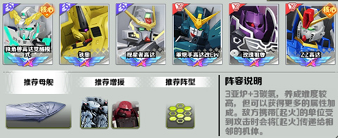 3碳氨+3品核,养成难度较高,但可以获得更多的属性加成。海盗高达和巴耶力高达优先攻击耐久值最低的敌方单位,会对敌方后排造成巨大的伤害。