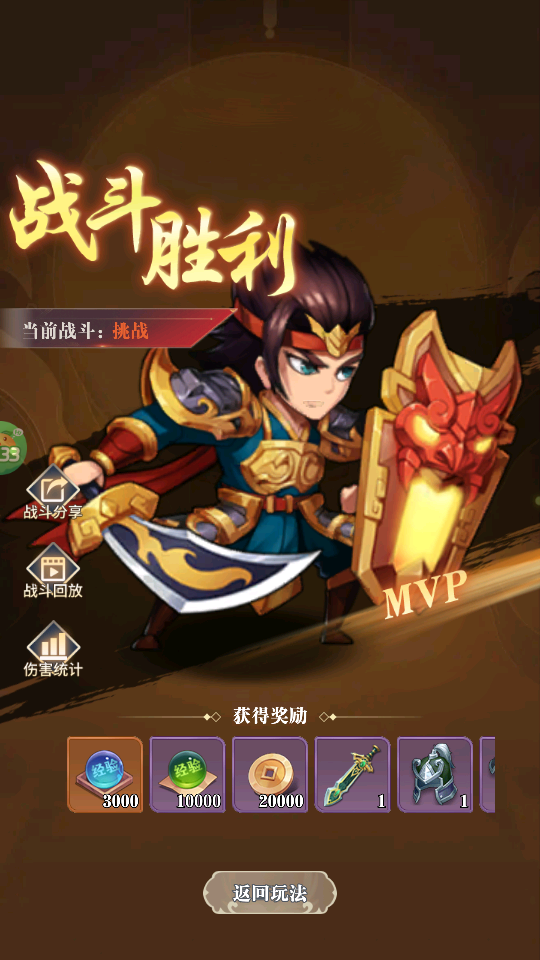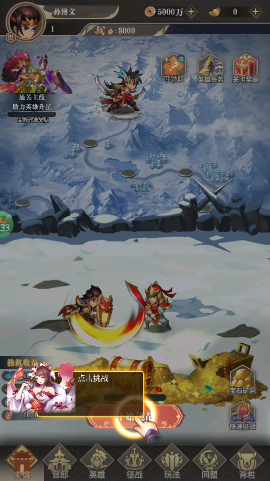 2、选择出战英雄,挑战成功后,可以获得经验、铜币等奖励;