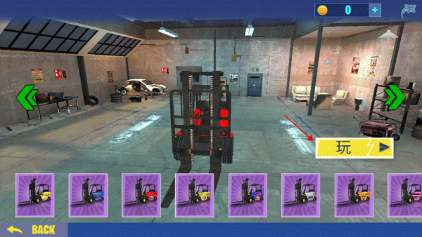 4、下方有很多不同颜色的叉车,点击“玩”开始游戏。