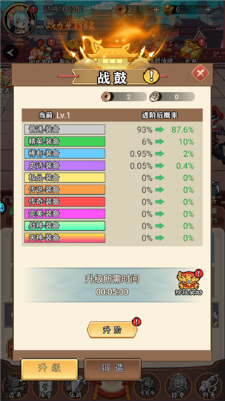 3、提升战鼓等级是非常重要的,可以升级直接升。