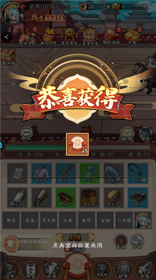 1、进入游戏点击下方的战鼓获取装备。