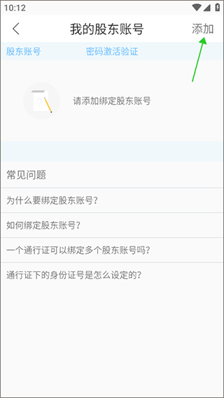 3、在进入“我的股东账号”页面中,点击“添加”