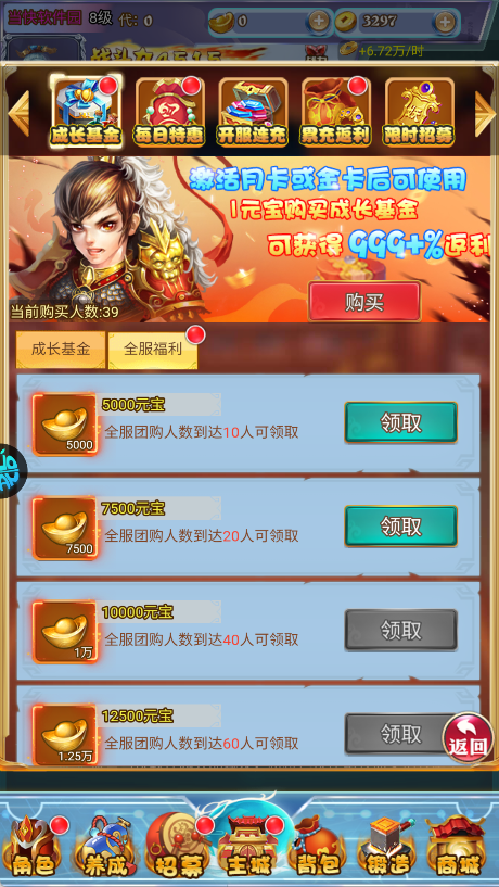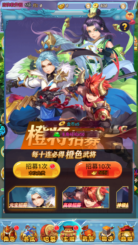 1、新手玩家一进入游戏就可以领取丰厚的登录奖励以及橙色武将。