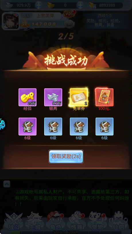 4、游戏中炼器是提升战力最快的方式。