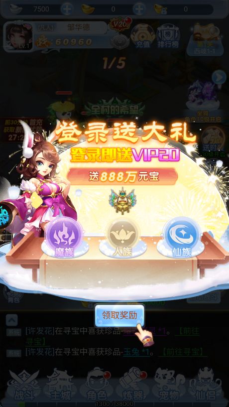 0.1折充值、超高返利、首充即满VIP,搭配每日签到、在线奖励,零氪玩家也能体验VIP待遇。