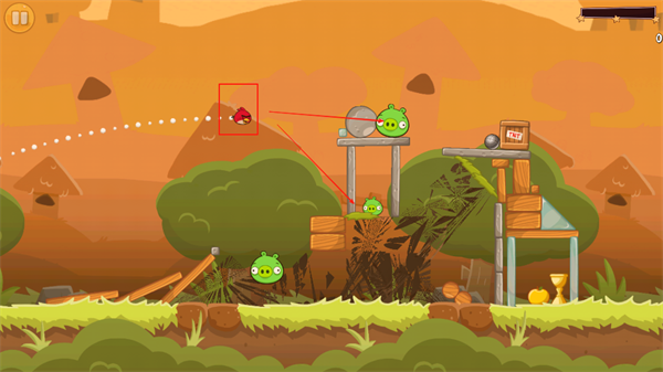 5、小鸟飞出去后撞到僵尸猪,僵尸猪就会消除。