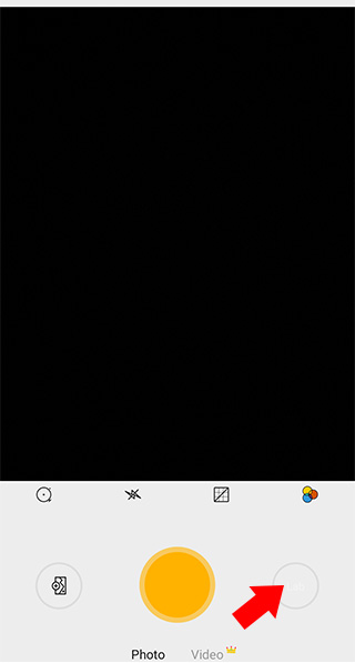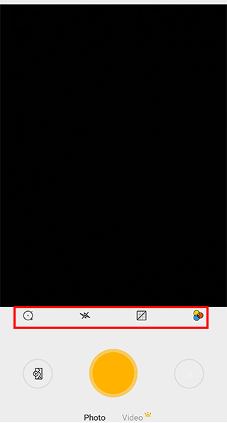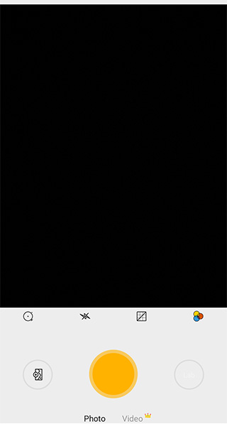 3、点击正中间黄色原型按钮为快门键,点击即可开始拍摄,快门键上方为基础工具栏,从左到右分别是定时拍摄、闪光灯、网格以及滤镜选项
