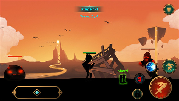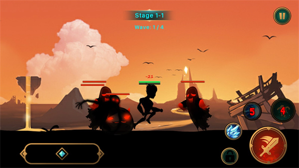 1、剪影风格的横版动作游戏,游戏的玩法与曾火爆一时暗刃Dark Sword手游十分相似;