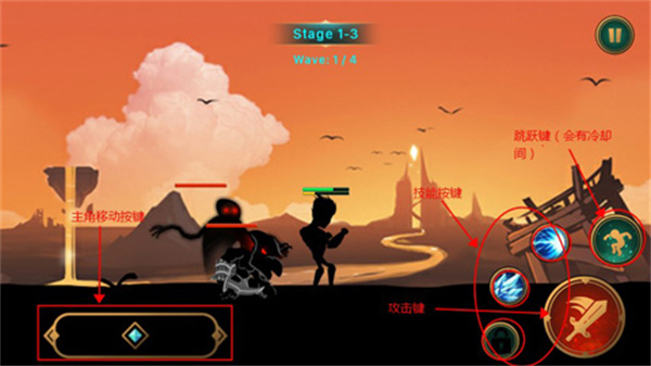3、操作虽然很简单,但是敌人也不差,最好不要让他们两面夹击,释放技能击杀他们;