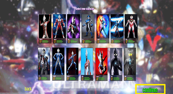 2、游戏中包含了很多的奥特曼,玩家可以自由的进行选择。