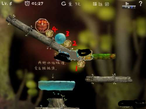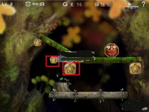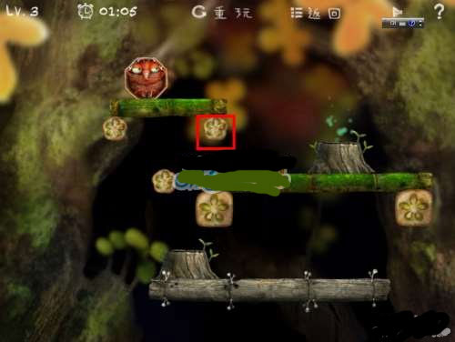 4、树叶:点击树叶,树叶就会消失。玩家只需要帮助小甲虫尽量靠近树洞,它自己就会滚回洞中。