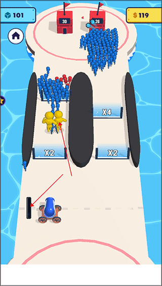 突击对决中文版手机版是一款非常棒的休闲益智游戏,在这款游戏中玩家们需要运用自己的智慧和点击速度,在尽可能短的时间内控制大炮喷射最多的蓝色小人,尽全力将大炮喷射到增加倍数更多的门上,以增加我方人群并占领所有基地!除了增加人数的蓝色大门,还有减少人数红色大门,需要和他们斗智斗勇不让红色大门减少我方人数,用你聪明的大脑去思考怎么样才能搜集更多更强大的队友,去打败所有敌人,夺得最后的冠军,有喜欢的朋友快来下载安装吧。