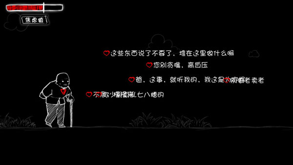 看不见的爱是一款剧情向游戏,玩家在游戏中经由转世投胎后丢失了自己的“内心”,为此为了重新寻找回那颗本心,您将伴随着角色继续人间走一趟。同时游戏主打暗黑格调,其全景采用的黑色色调让该游戏略显深度,在历经人世间的这趟寻找“内心”行动,玩家所扮演的角色将经历人生三个阶段,少年-青年-老年,在每一阶段行走的过程中,都会有来自不同的语言带给你“标签”,建议,当然这些都不是多么善意的言辞,或许在生活中我们也体验过来自不同人的建议,他们也许与我们关系亲近或疏远,但是他们所说的语言对我们未来的人生所招成的影响是深远而长久的。为此,在这里玩家将通过的方式来,排除掉这些随机出现的各种言辞,继而避免焦虑值的下降,虽然是一款简单的游戏,但内容却引人深思,所谓三思后行,也不过如此吧!