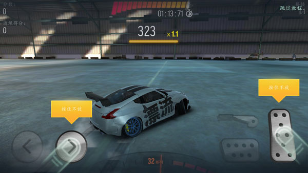 该款游戏拥有次世代的3D高清漂移画面,并且逼真的物理引擎能够让玩家在驾驶过程当中感受更确切的驾驶体验,在这里你可以展现出你独特的漂移实力,上演各种极限的漂移操作,而关于该游戏的漂移操作也比较简单,但由于每种赛车所需操控性的不同,以及漂移阻力的差别,要想成功驾驭各种赛车,你还需要多多练习,现在小编就基本基本的操作方法交给你,具体内容如图下所示,按照操作完成漂移。