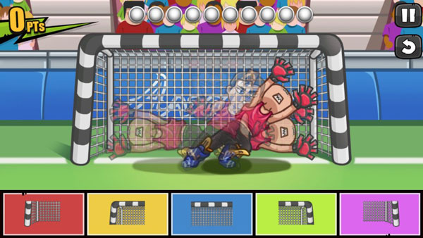 在点球大战中我们有五个按键可以使用,每个按键都有各自的颜色分别代表着球门的不同区域。虽然在游戏一开始系统就有提示各个按钮代表的射门区域,并且按钮上也有标示,但是许多小伙伴还是表示,守门员的动作太快,根本来不及看按钮。这里波比建议大家不用五个按键都使用,你可以只记住右边两个或者左边两个按钮,等守门员向另一边防守时射门,这样可以减少你的反应时间,减轻反射弧压力。