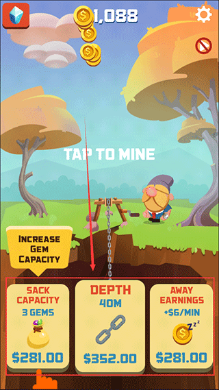3、抓取的宝石和水晶可以兑换成金币,收集金币的可以提升钩爪的容量大小,锁链的长度等等;