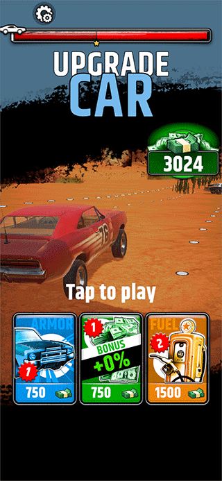 4、游戏结束后可以使用钱币提升汽车的燃聊、盔甲