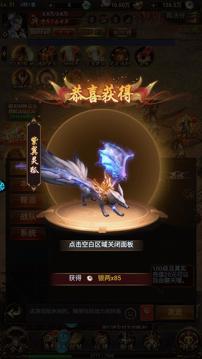 4、当你的角色等级提升到一定程度后,你就可以挑战第一级boss了;打败boss不仅可以获得丰富的经验值和元宝,还可以提升你的战斗力;