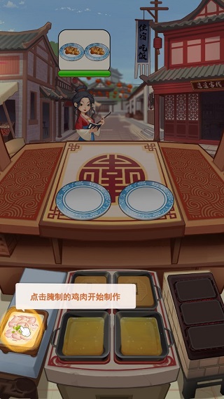 点击炸好的鸡肉放进盘子,点击盘中的炸鸡给客人。