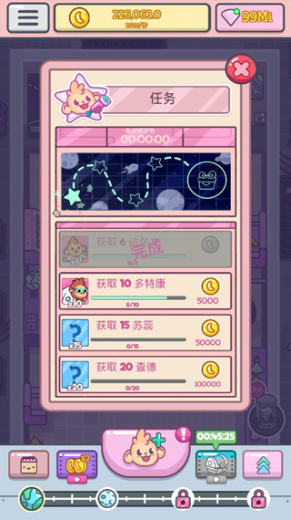 在合并猴子中玩家们可以通过自己的操作来将猴子们的种类慢慢增加,而这些猴子将会带领你进入全新的宇宙空间,并发现一个完全不同的全新星球,在该游戏中还设置有任务机制,完成任务后你将获取高额的回报,那么如何才能快速的完成任务,再利用这些回报来更加快速的解锁星球呢。